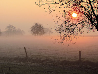 zonsopkomst een rustige ochtend rook recht omhoog |